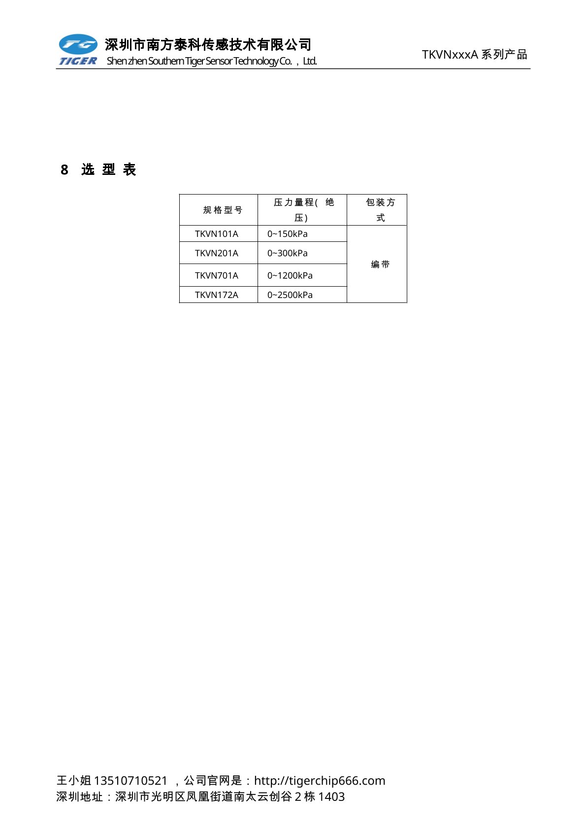 TKVNxxxA系列压力传感器为高灵敏度的标准电压输出型压力传感器芯片