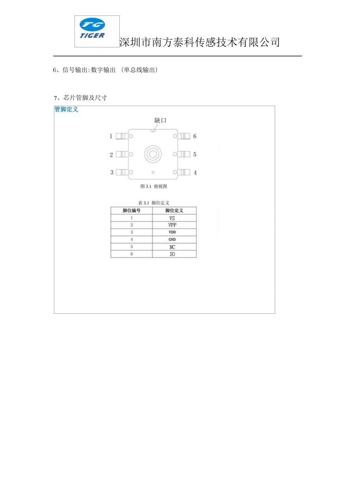 1.2产品特点 MEMS技术 表压形式 SOP8带气嘴封装形式 防潮和防油 高精度扩散硅压力传感芯片 测量范围:-100KPa~0KPa~5KPa~700KPa,可定制 供电范围:3.0~5.5V 输出方式选择:标准电压输出,或比例电压输出