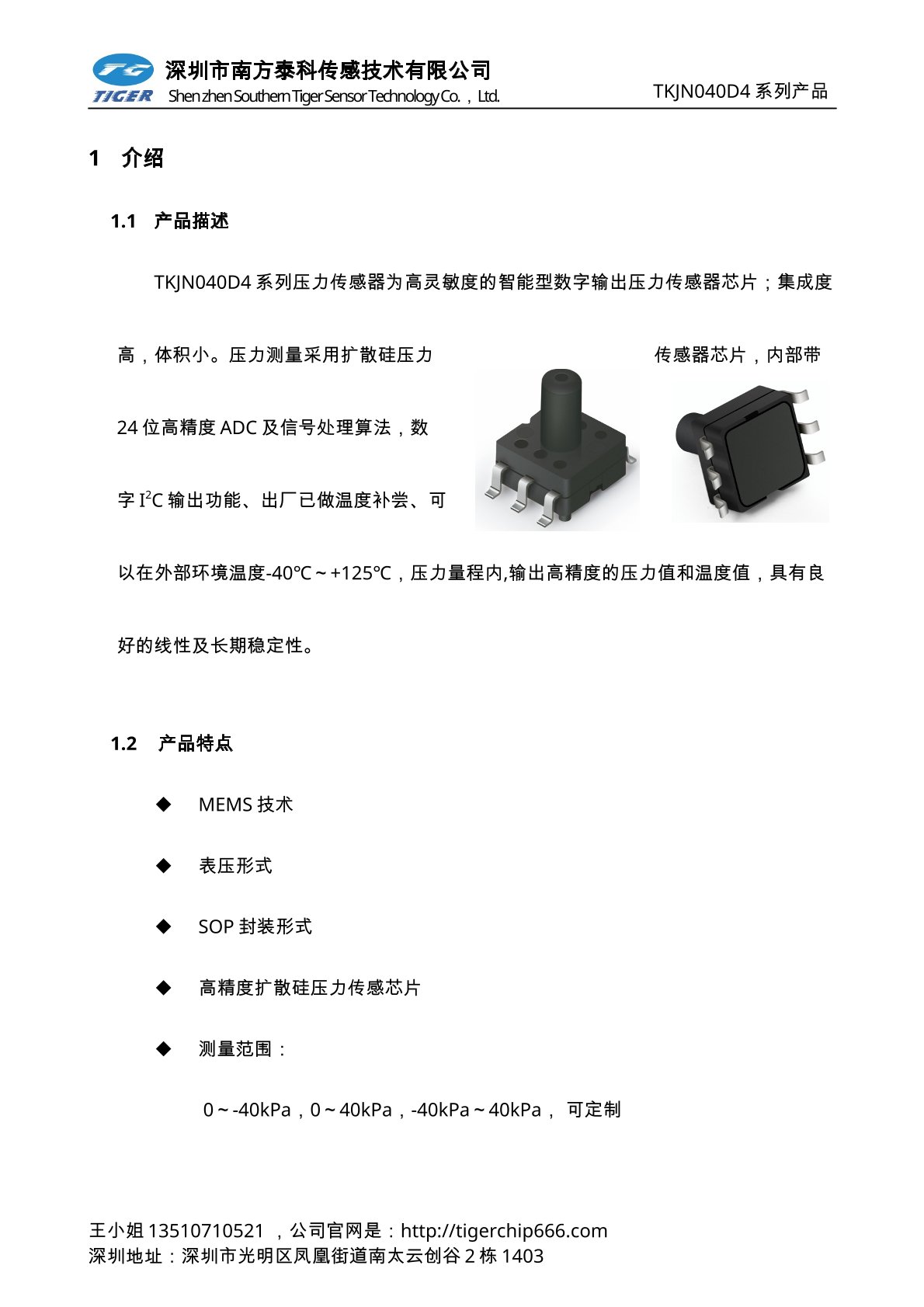 TKUNxxxD系列压力传感器为高灵敏度的智能型数字输出压力传感器芯片
