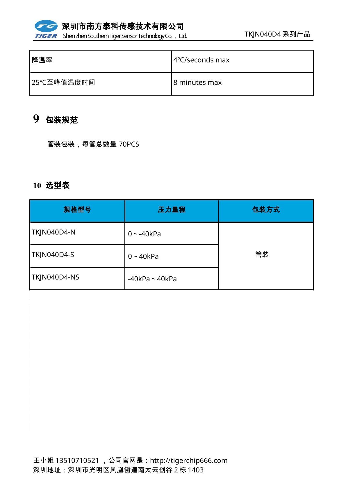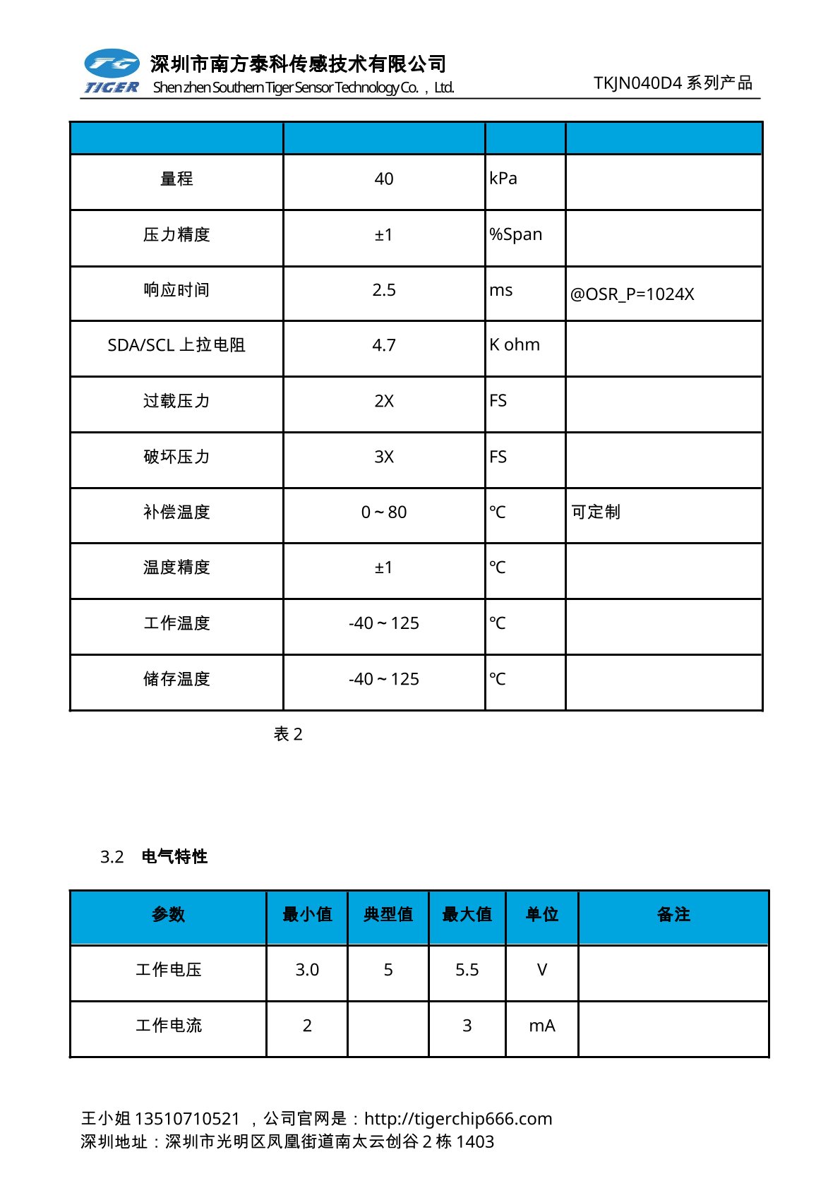 TKVNxxxD系列压力传感器为高灵敏度的智能型数字输出压力传感器芯片