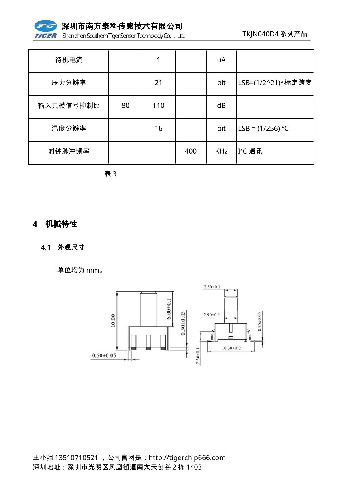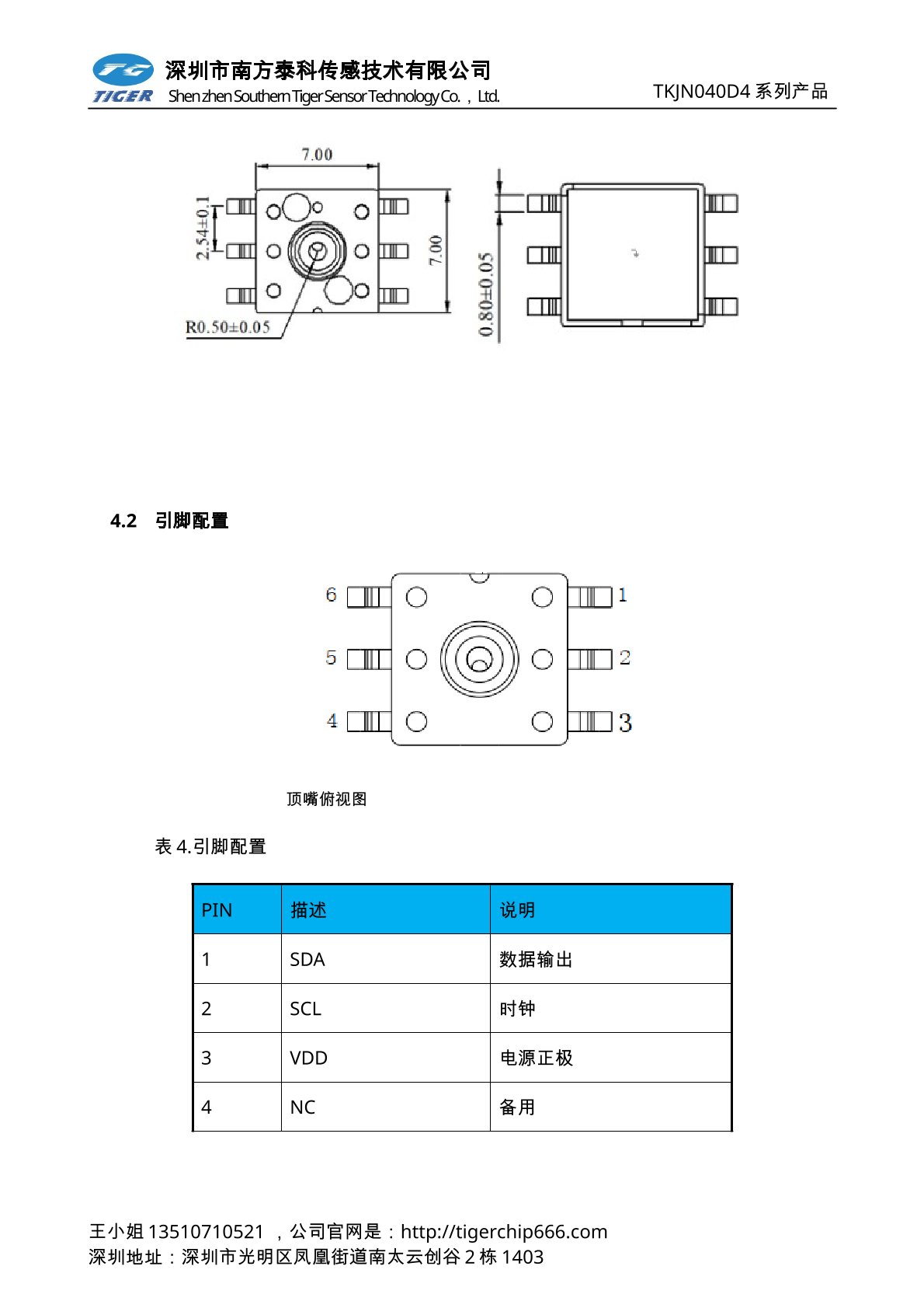 TKJN040D4系列压力传感器为高灵敏度的智能型数字输出压力传感器芯片;集成度高,体积小。压力测量采用扩散硅压力传感器芯片,内部带24位高精度ADC及信号处理算法,数字I2C输出功能、出厂已做温度补尝、可以在外部环境温度-40℃~+125℃,压力量程内,输出高精度的压力值和温度值,具有良好的线性及长期稳定性。