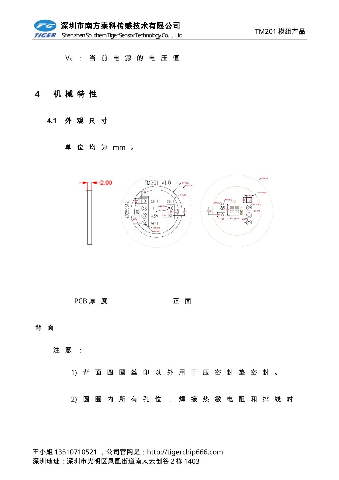 TM201模组是一款适用于机油压力及温度测量的传感器模组,其核心是利用MEMS技术加工的硅压阻式压力敏感芯片,集成度高,压力测量采用扩散硅压力传感器芯片,内部带24位高精度ADC及信号处理算法,DA输出、出厂已做温度补尝,可以在外部环境温度-40℃ ~ +125℃、压力量程内,输出与压力值线性比例的电压信号。