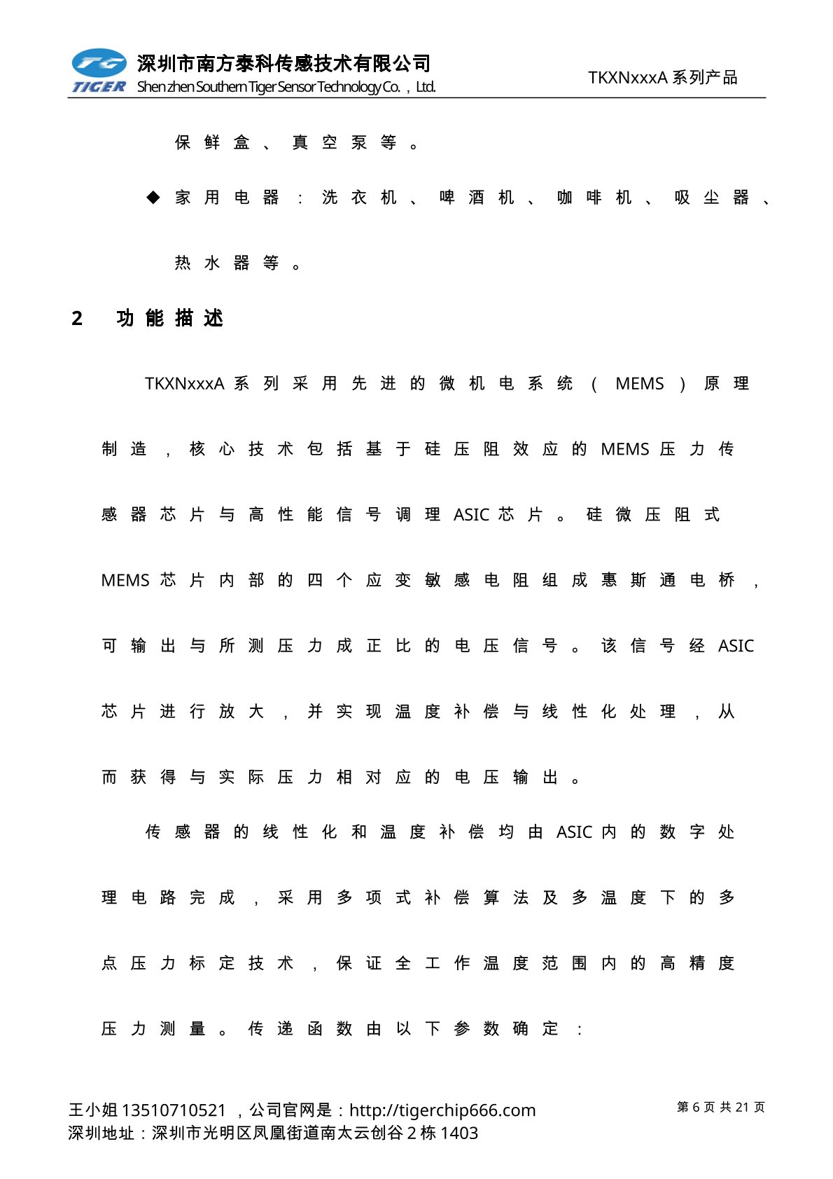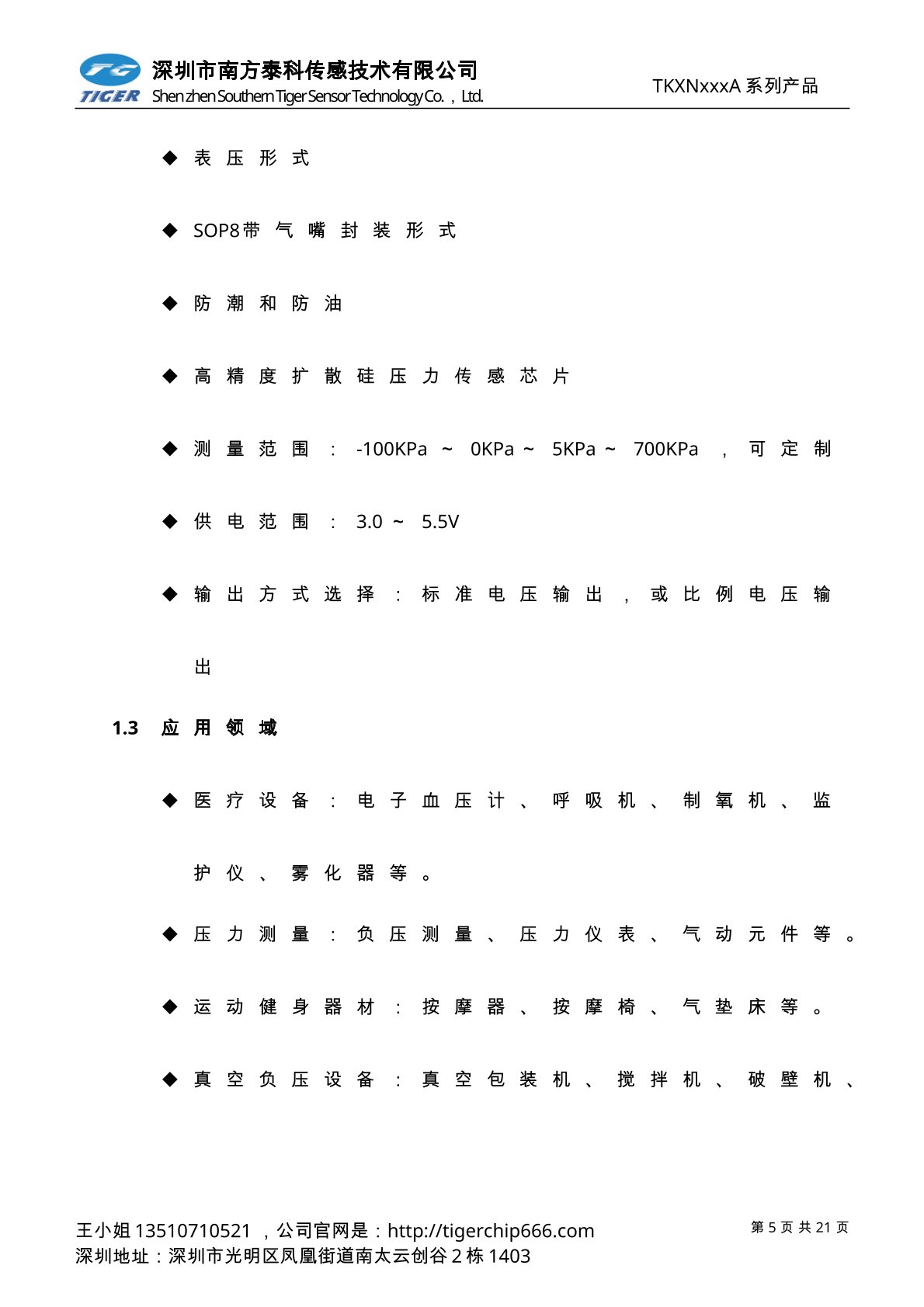 TKUNxxxA系列压力传感器为高灵敏度的标准电压输出型压力传感器芯片