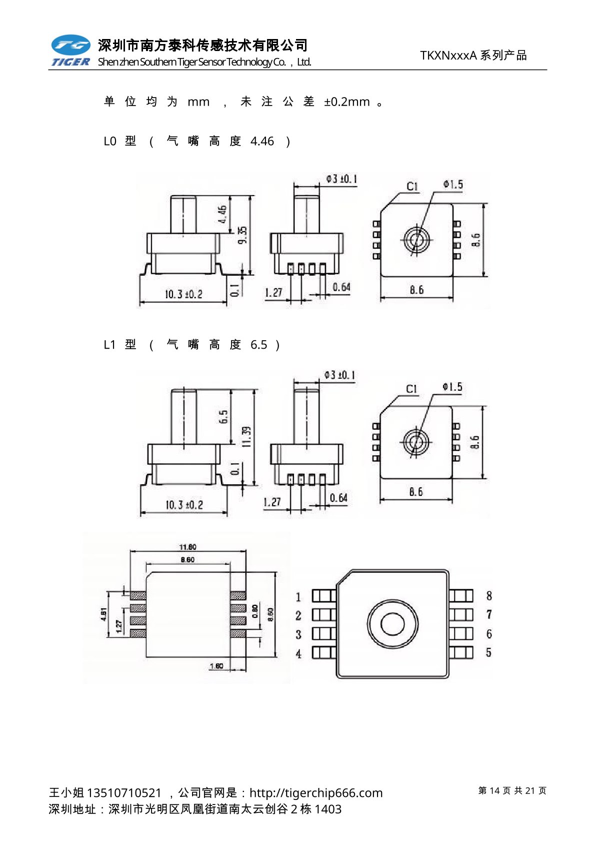 TKXN-A系列压力传感器采用SOP8封装