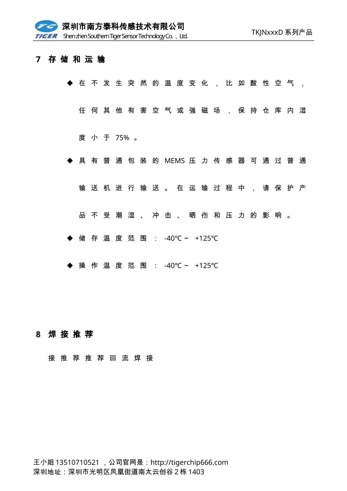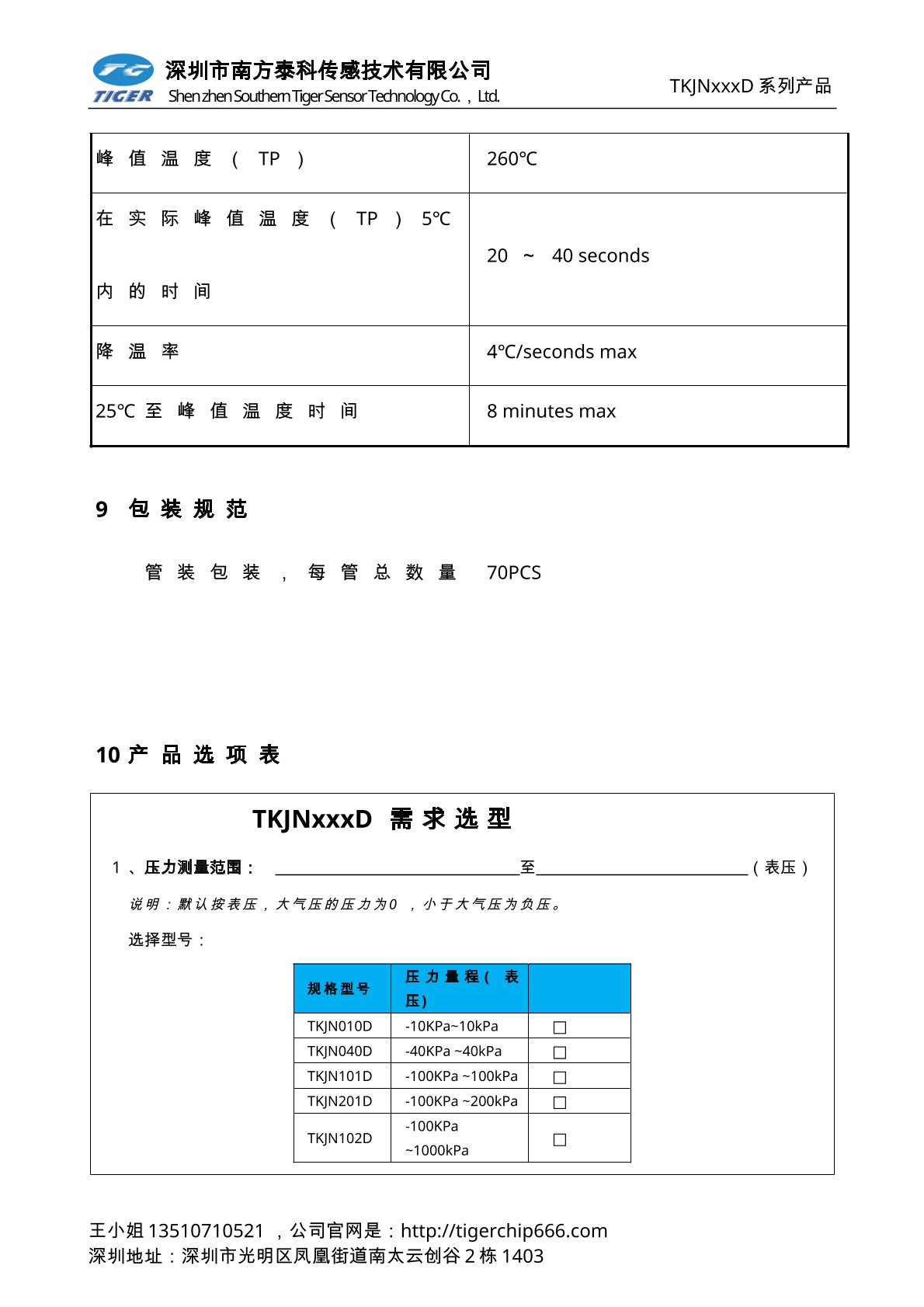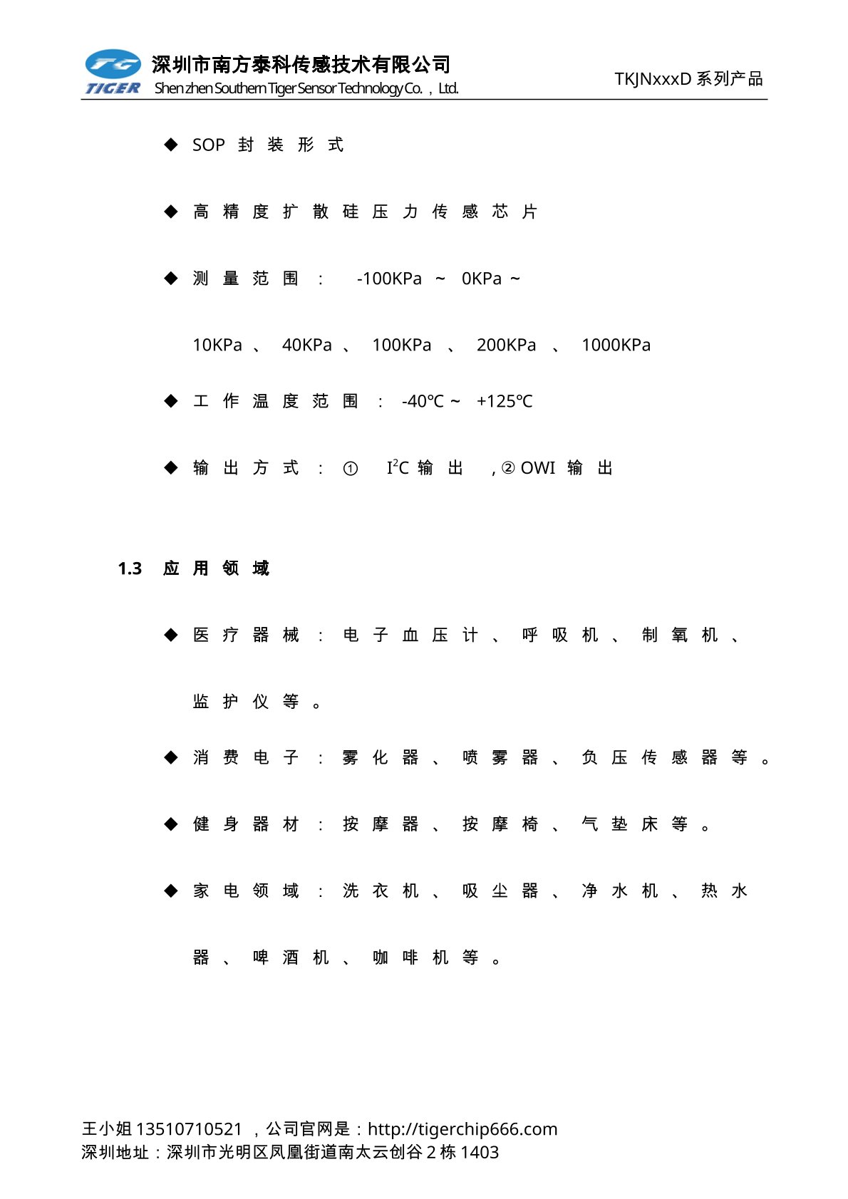 TKVNxxxD系列压力传感器为高灵敏度的智能型数字输出压力传感器芯片